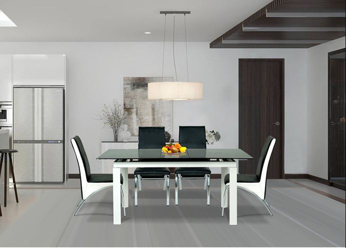 Bàn ăn Hòa Phát B55 Bàn ăn khung thép sơn tĩnh điện. Trong đó mặt bàn sử dụng kính cường lực và có thể kéo trượt thay đổi chiều dài sử dụng từ 1300 - 1600mm. Bàn kết hợp với ghế G56. Một bộ gồm 1 bàn và 6 ghế.