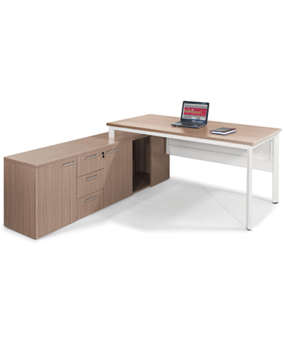 Bàn giám đốc Nội thất 190 BLD04 chân ống Ovan, yếm sắt sơn tĩnh điện màu trắng, có tủ phụ đi kèm.