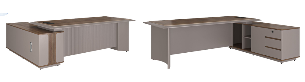 Bàn lãnh đạo LUXURY SUPREME S2 chất liệu gỗ sơn + Melamine mặt bàn có 01 nắp hộp điện, kiểu dáng hiện đại, sang trọng, góc cạnh mặt bàn được bo tròn đều. Tủ phụ có kèm khóa cảm ứng vân tay tại ngăn kéo.