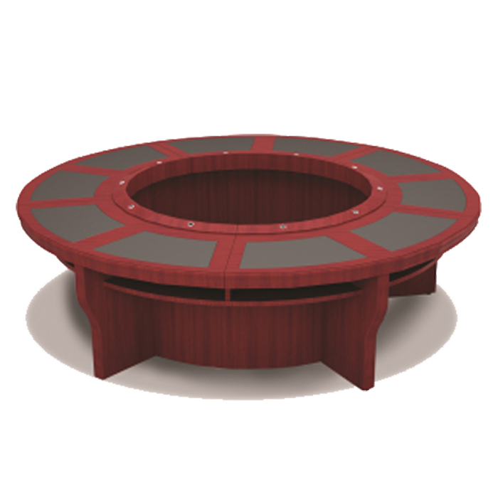 Bàn họp Hòa Phát gồm 3 khối ghép thành. Trên mặt bàn chia 12 tấm PVC trang trí.