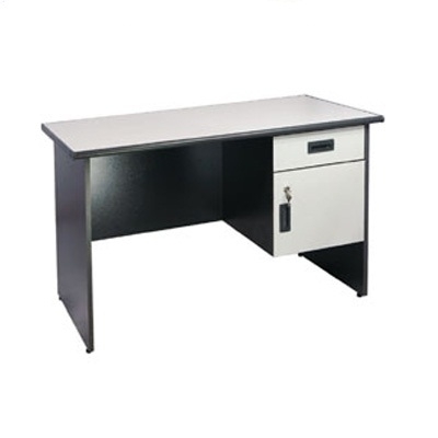 Bàn văn phòng 190 BG04 mặt phủ Melamine. Mặt màu ghi, chân màu chì. Hộc treo 1 ngăn kéo.