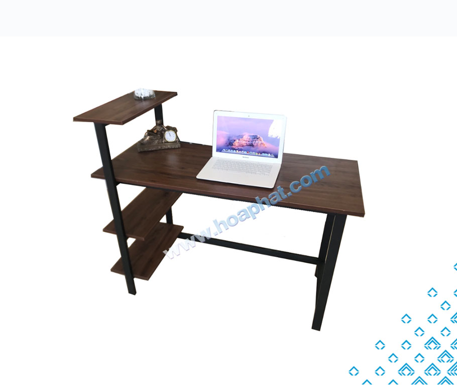 Bàn làm việc BMT30 dùng cho học sinh hoặc gia đinh, bàn có khung thép sơn tĩnh điện màu đen nhám. Phần gỗ bàn mùa M6. Bàn có các đợt gỗ dọc bên cạnh bàn để đồ hoặc để sách thuận tiện. Có thể đổi vế phần giá để đồ bên trái hoặc bên phải.