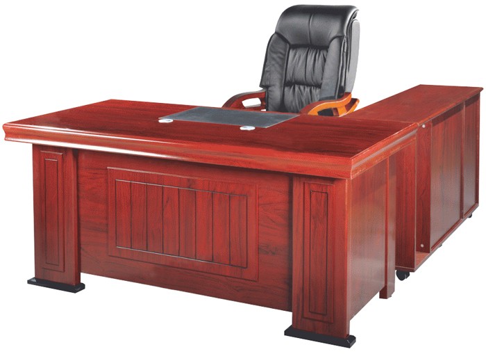 Bàn lãnh đạo Hòa Phát DT1890H27 mặt bàn hình chữ nhật, trên mặt có tấm PVC  trang trí. Yếm bàn ốp nổi phào gỗ hình chữ nhật + soi chỉ trang trí sơn đen. Bàn làm bằng gỗ công nghiêp MDF sơn phủ PU màu cánh gián.