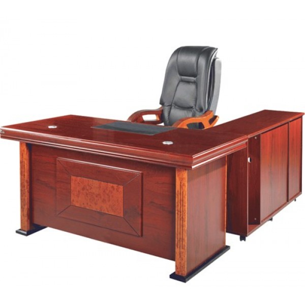 Bàn lãnh đạo Hòa Phát DT1890H37 mặt chữ nhật, có tấm PVC trang trí. Yếm bàn ghép ốp nổi. Bàn có 2 màu vàng be và màu sơn cánh Gián.