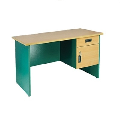 Bàn văn phòng 190 BG05V mặt phủ Melamine. Mặt màu ghi, chân màu chì. Hộc treo 1 ngăn kéo.