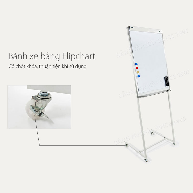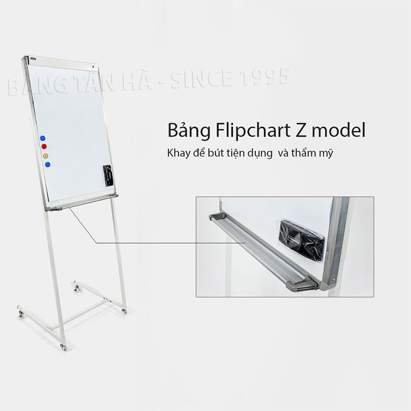 Bảng Flipchart Zebra khung nhôm định hình có chân thép di chuyển, cốt nhựa phía sau, mặt bảng màu trắng thép từ tính có đường kẻ mờ theo tiểu chuẩn và chất lượng của Hàn Quốc.