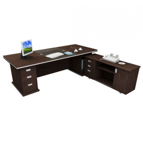 Bộ bàn giám đốc Fami BGD18F2 Bộ bàn giám đốc gồm: Bàn chính BGD1809F2 & bàn phụ BP1400F. Mặt bàn dày 63mm, hồi , hậu, dày 24mm, hậu có chỉ Inox. Bề mặt ngoài phủ Laminate HP Hàn Quốc, chống cháy, chống xước, chống thấm nước, chống nhiễm khuẩn. Mặt trong phủ Vinyl Hàn Quốc. Một bên hồi có 3 ngăn kéo, 1 bên trống để 3 CPU máy tính.
