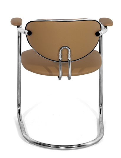 Ghế chân quỳ GQ16-M khung mạ Niken, tay ốp giả da, đệm tựa bọc da PU.