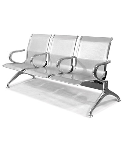 Ghế phòng chờ GC01M-3T có 3 chỗ ngồi mặt thép mạ, chân tay mạ, có tay ở giữa.