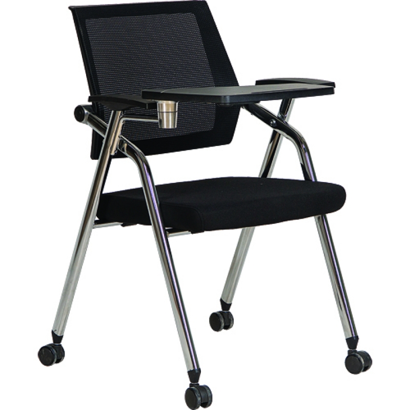 Ghế hội thảo GL402X khung tựa nhựa bọc vải lưới, có bàn viết. Ghế có thể gấp gọn và xếp lồng lại với nhau theo hàng. Chân thép mạ có bánh xe di chuyển. (Hàng nhập khẩu)