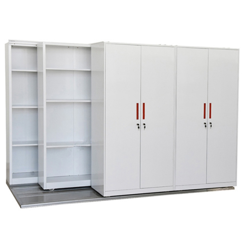 Gía tài liệu di động Hòa Phát MCF3K2 giá để tài liệu di động, sử dụng hệ thống ray trượt, nhằm tiết kiệm không gian. Giá gồm 3 lớp: Lớp trong cùng là 3 giá kiểu GS6 cố định. Lớp thứ 2 là 2 giá kiểu GS6 di động. Lớp ngoài cùng là 2 tủ kiểu TU09K2D di động. Toàn bộ tủ phủ lớp sơn trắng sáng theo phong cách hiện đại.