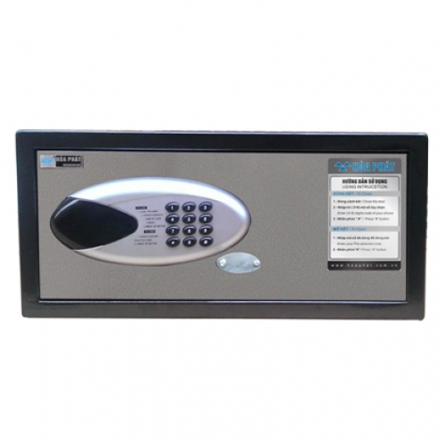 Két sắt khách sạn Hòa phát làm bằng thép dày, sử dụng khóa điện tử. Khối lượng 11 kg (+/- 10%). Sản phẩm được dùng trong các nhà nghỉ, khách sạn.