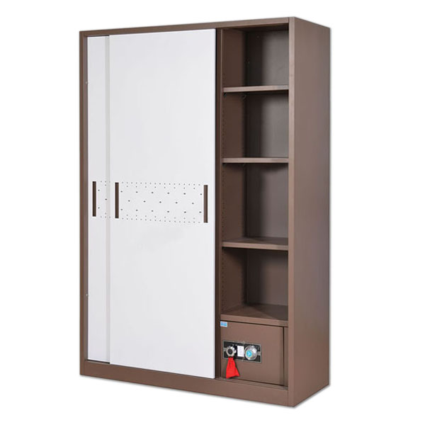 Tủ quần áo Hòa Phát TU19B2C2 sơn tĩnh điện 2 cánh lùa có hoa văn trang trí hiện đại. Tủ gồm 2 khoang trong đó khoang trái có 2 đợt di động và 1 suốt treo áo, khoang phải có 3 đợt di động và 1 ngăn kéo được bảo mật bằng khóa mã chuyên dùng cho két.