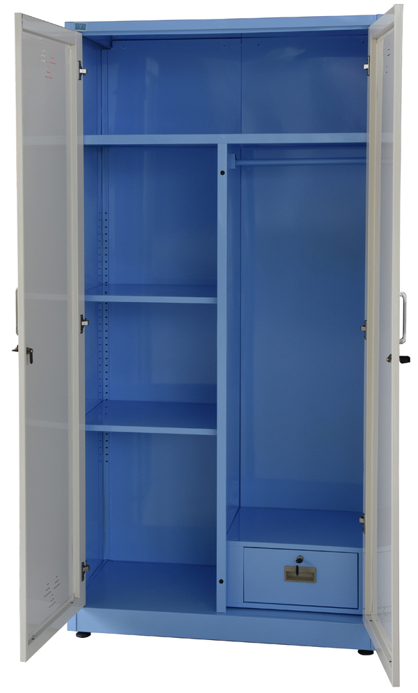 Tủ sắt gia đình Hòa Phát TU15B1C2 sơn tĩnh điện phục vụ cho đối tượng cá nhân, gia đình. Bên trong tủ có 1 đợt cố định, 2 đợt di động, 1 ngăn phụ có khóa và 1 suốt treo quần áo. Hai cánh dùng khóa riêng biệt.