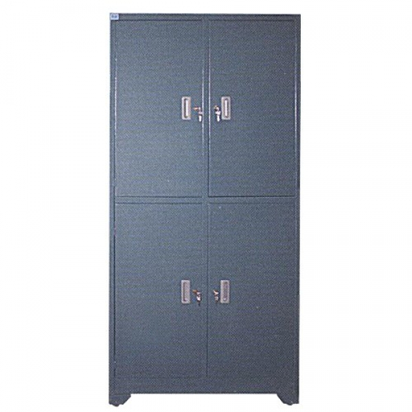 Tủ sắt Hòa Phát thép dày sơn tĩnh điện vân sần. Tủ gồm 4 khoang, mỗi khoang có 1 đợt cố định, chân tủ gắn bánh xe di chuyển. Các chi tiết tủ liên kết với nhau bằng vít và đinh rút.