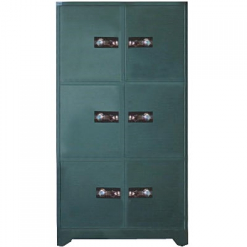 Tủ sắt Hòa Phát thép dày sơn tĩnh điện vân sần. Tủ gồm 6 khoang, cánh tủ bảo mật bằng cơ cấu khóa mã không có chìa, chân tủ gắn bánh xe di chuyển. Các chi tiết tủ liên kết với nhau bằng vít và đinh rút.