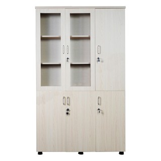Tủ văn phòng Hòa Phát AT1960-3BK tủ 3 buồng gỗ Melamine, phía trên gồm 2 khoang cánh kính để tài liệu và 1 khoang treo quần áo, phía dưới có 3 cánh mở.